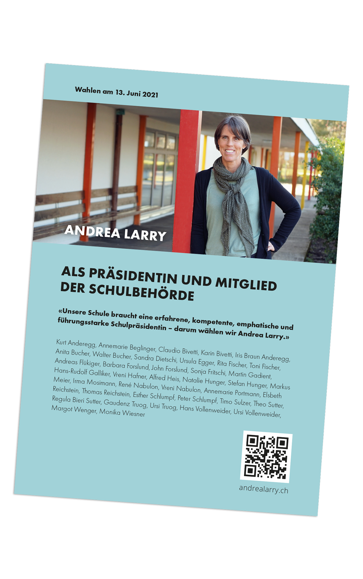 Andrea Larry benötigte für ihren Wahlkampf um das Schulpräsidium von Mönchaltorf einen Werbeflyer.