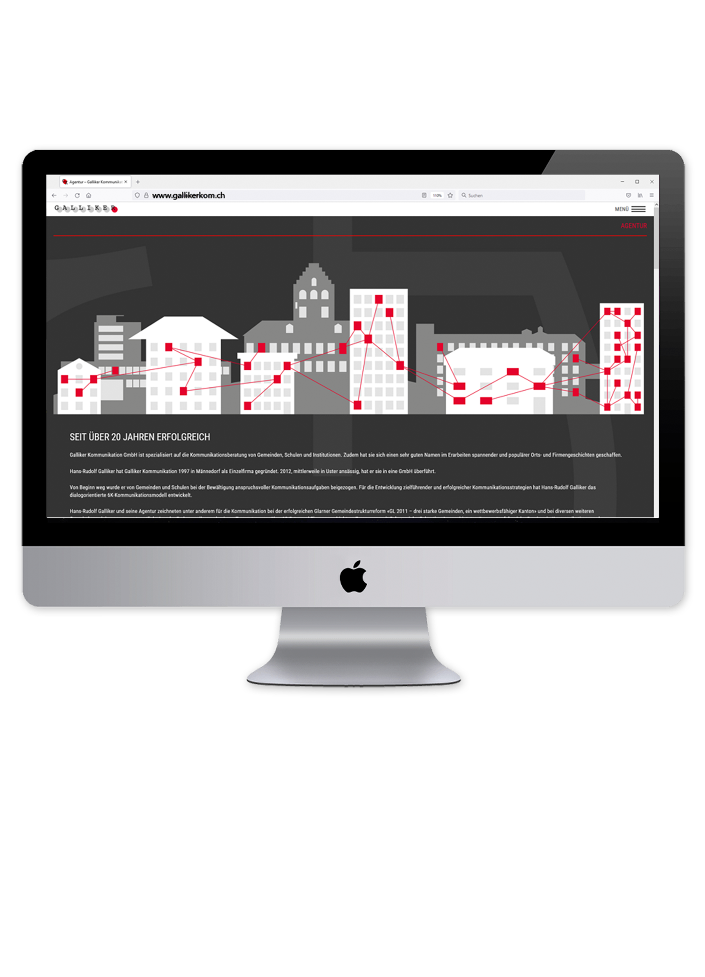 Im Auftrag der Kommunikationsagentur Galliker Kommunikation GmbH wurde eine anspruchsvolle Webseite in einem dunklen Design erstellt, bei dem die Typografie im Mittelpunkt steht. Das charakteristische geometrische Muster "Galliker Kommunikation GmbH" dient als subtiler Hintergrund und fügt dekorative Elemente hinzu, welche die Einzigartigkeit des Unternehmens hervorheben.